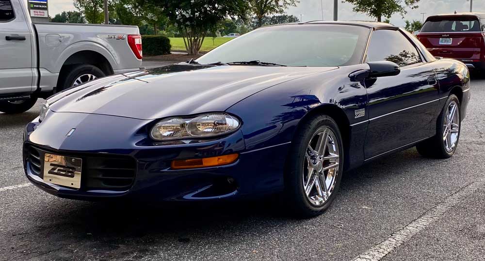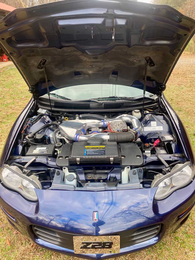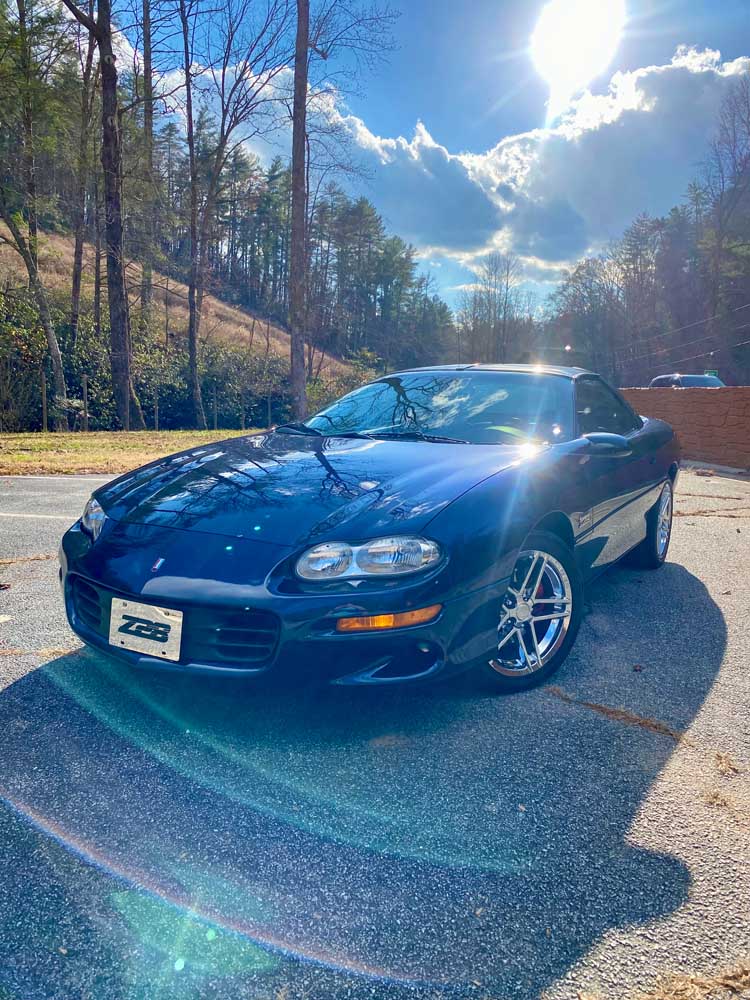 Very well documented and meticulously maintained, garage-kept Navy Blue Metallic (NBM) 1999 Supercharged Z28 Camaro with only 21,500 original miles. LS1 V8, 6-speed manual, makes 470 wheel horsepower.